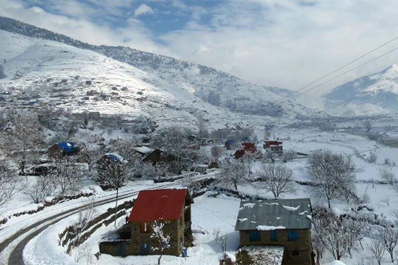 जुम्ला । शुक्रबार बिहानैदेखि हिमपात र वर्षा हुँदा जुम्लाका किसानलाई राहत पुगेको छ । हरेक वर्ष हिउँदमा हिमपात हुने जिल्लामा यस वर्ष ढिलोगरी हिउँ र वर्षा भएको हो । उच्च ठाउँमा एक फिट जति हिउँ परेको पातारासी गाउँपालिका–१ का स्थानीयवासी मुनबहादुर एडीले जानकारी दिए । ढिलोगरी वर्षासँगै भएको हिमपातपछि आकाशे पानीको पर्खाइमा रहेका किसान भने खुसी भएका छन् । गत असोजदेखि पानी नपर्दा हिउँदे बाली सुक्दै गएका थिए । जिल्लामा स्याउ र ओखरका बिरुवा रोप्ने याम आएकाले हिमपातका कारण सहज भएको कृषि विकास कार्यालयका सूचना अधिकारी दीपकसिंह धामीले बताए । जुम्लालगायत माथिल्लो कर्णालीमा हिमपात भएसँगै हवाई सेवा अवरुद्ध भएको छ । साथै सदरमुकाम खलङ्गा बजारबाट चल्ने लामो तथा छोटा दूरीका सवारीसाधन फाट्टफुट्ट चलेको तिला कर्णाली यातायातले जनाएको छ । गत २४ घण्टामा जिल्लामा ३३ मिलिमिटर वर्षा भएको हावापानी फिल्ड कार्यालयले जनाएको छ ।